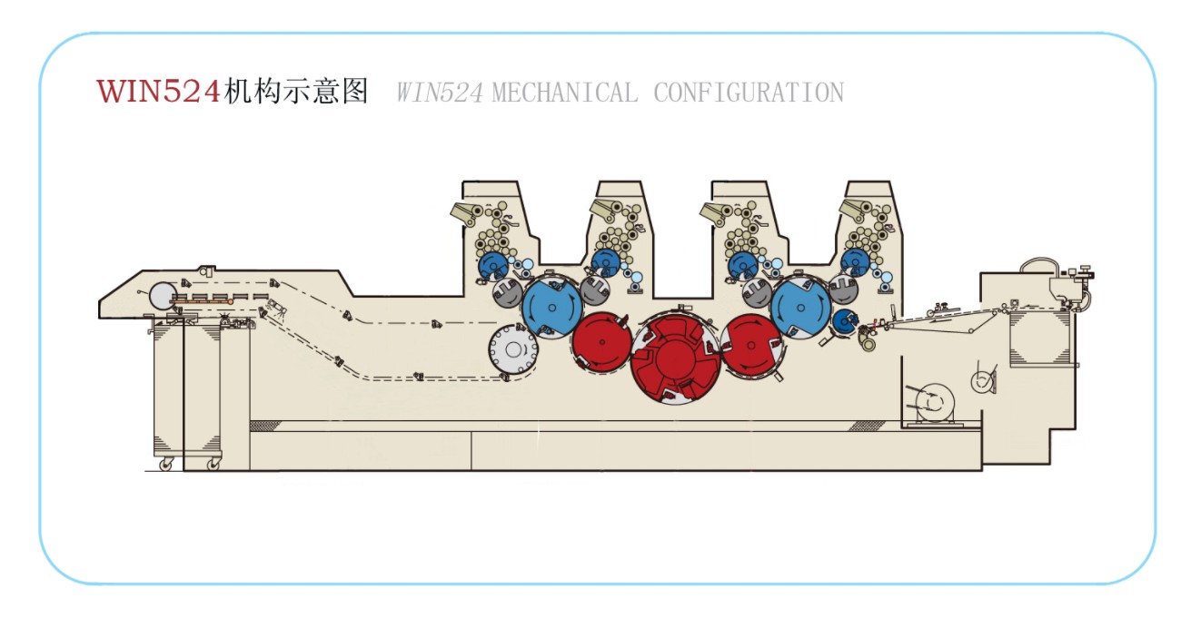 9) Penggunaan silinder teraan dua diameter dan silinder pemindahan tiga diameter mengurangkan bilangan pemindahan kertas dan oleh itu meningkatkan ketepatan pendaftaran kertas.